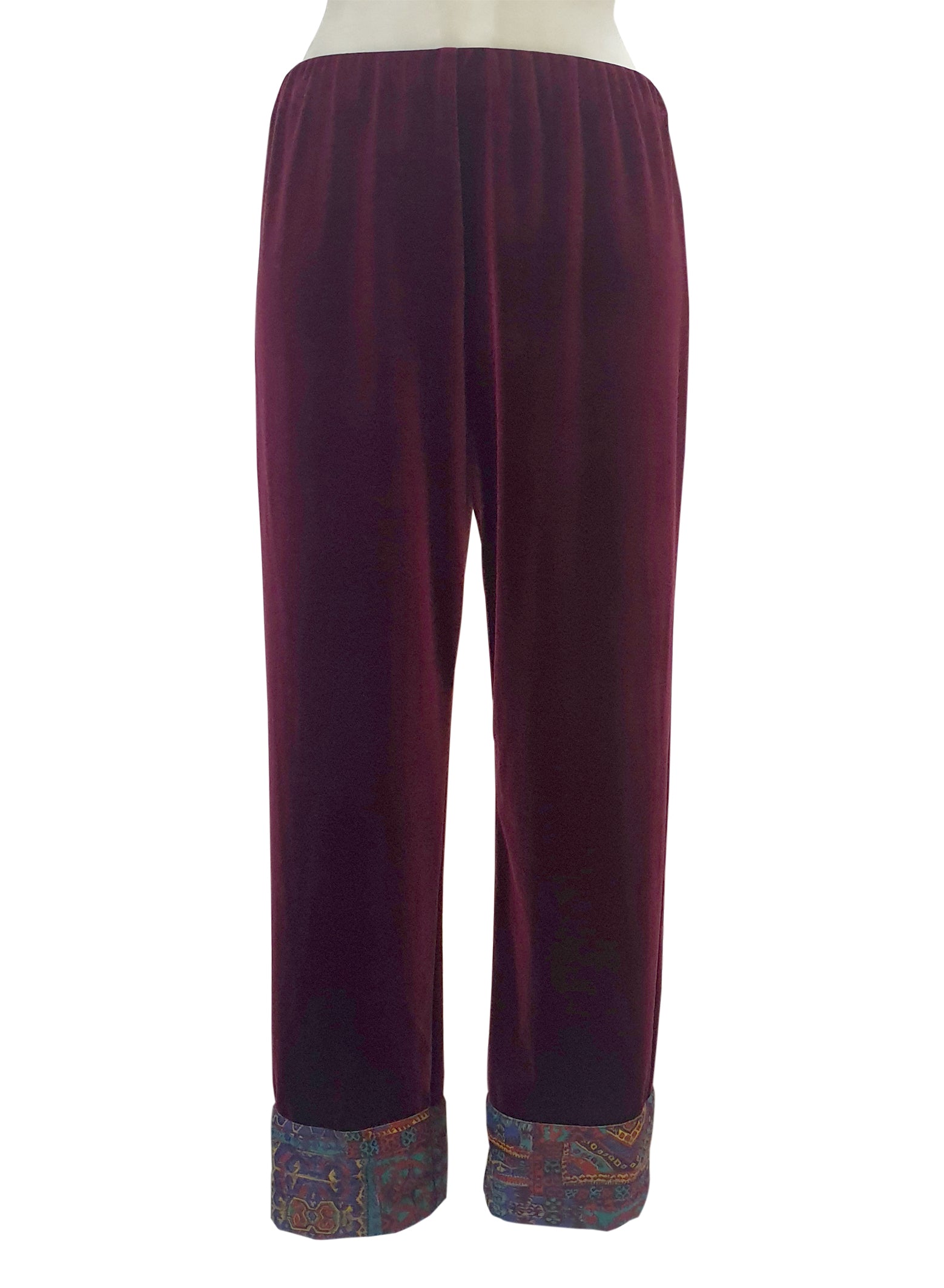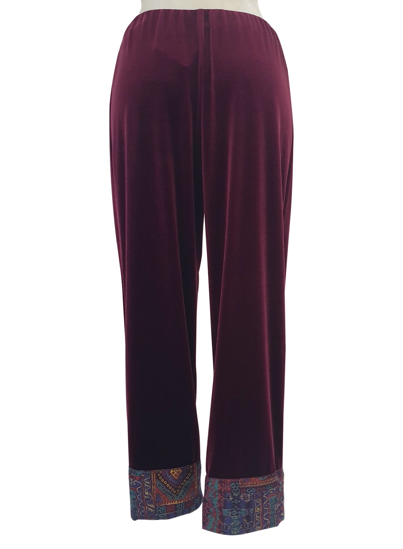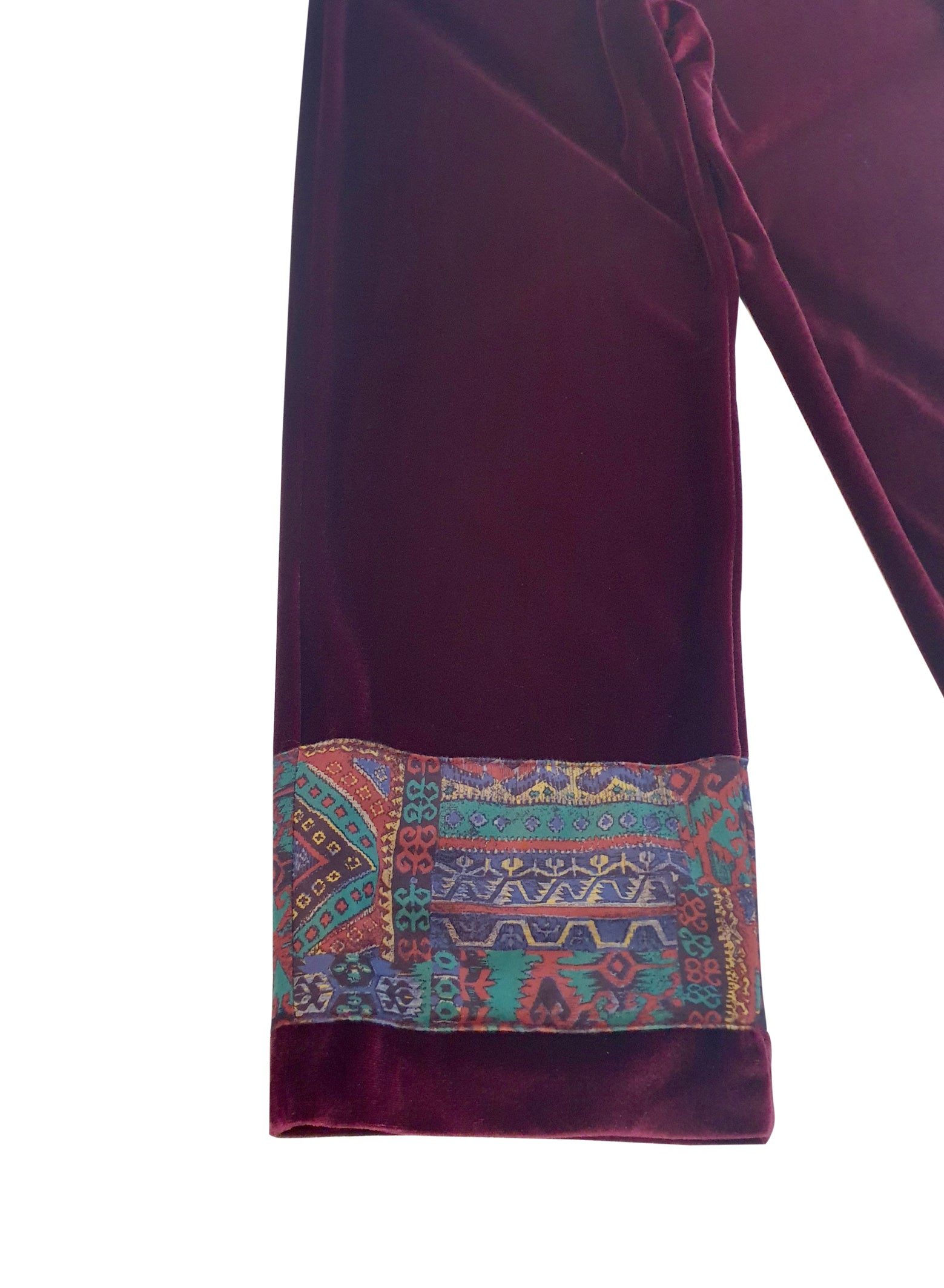 Tight trousers made of soft chenille, and enriched by a fabric border of various colours on the bottom. The trousers can be combined with the wheel jacket or with one of our colourful shirts.