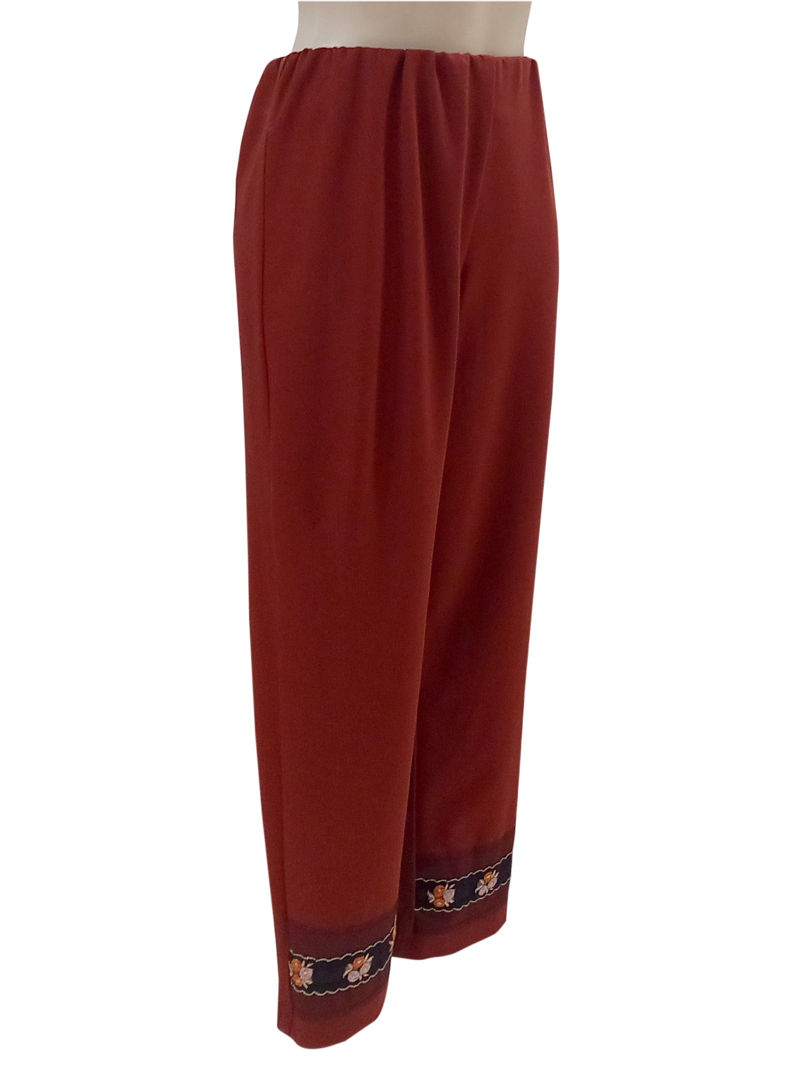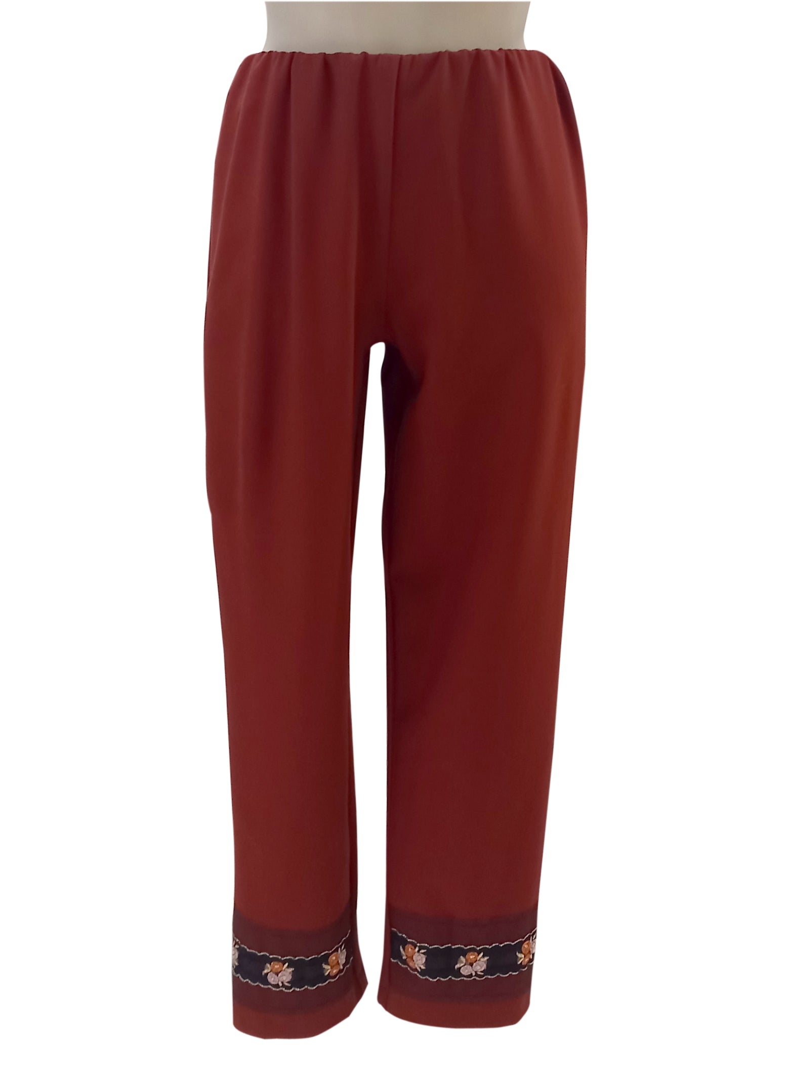 Tight trousers made of viscose and enriched by a fabric and lace border on the bottom. The trousers can be combined with one of our solid-coloured shirts.