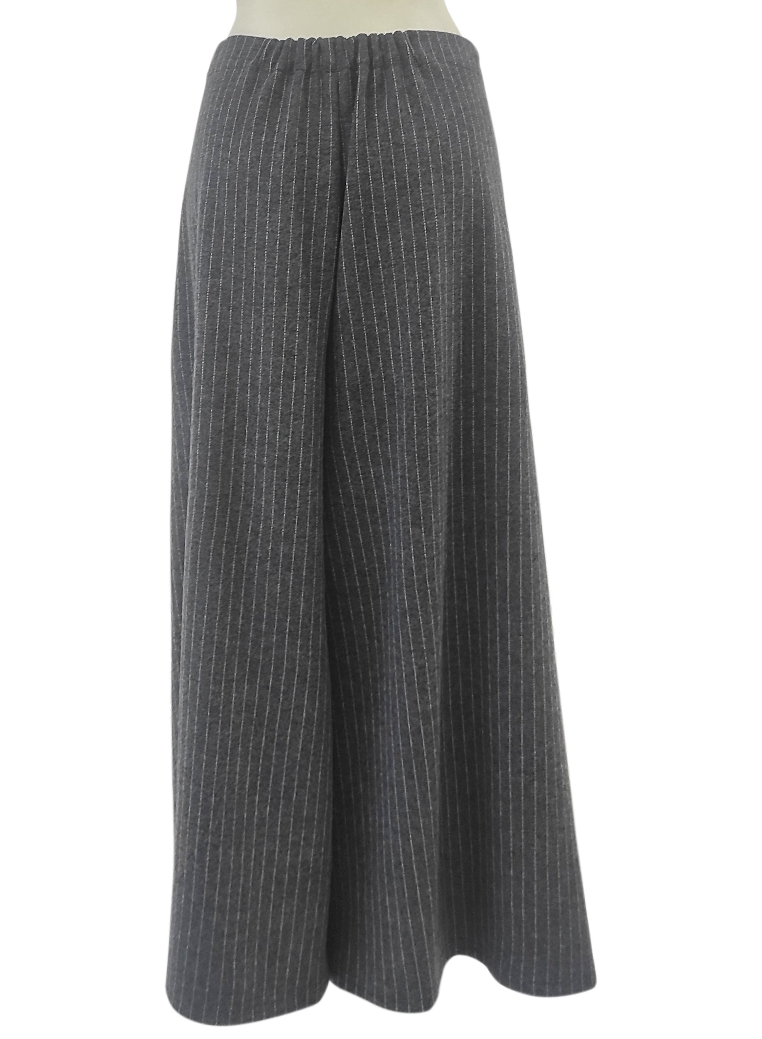 Pantalone morbido a palazzo, realizzato in calda lana. Consente un’ampia disponibilità in quanto la misura della vita è regolabile. I bottoni possono essere spostati e regolati sul proprio punto vita.