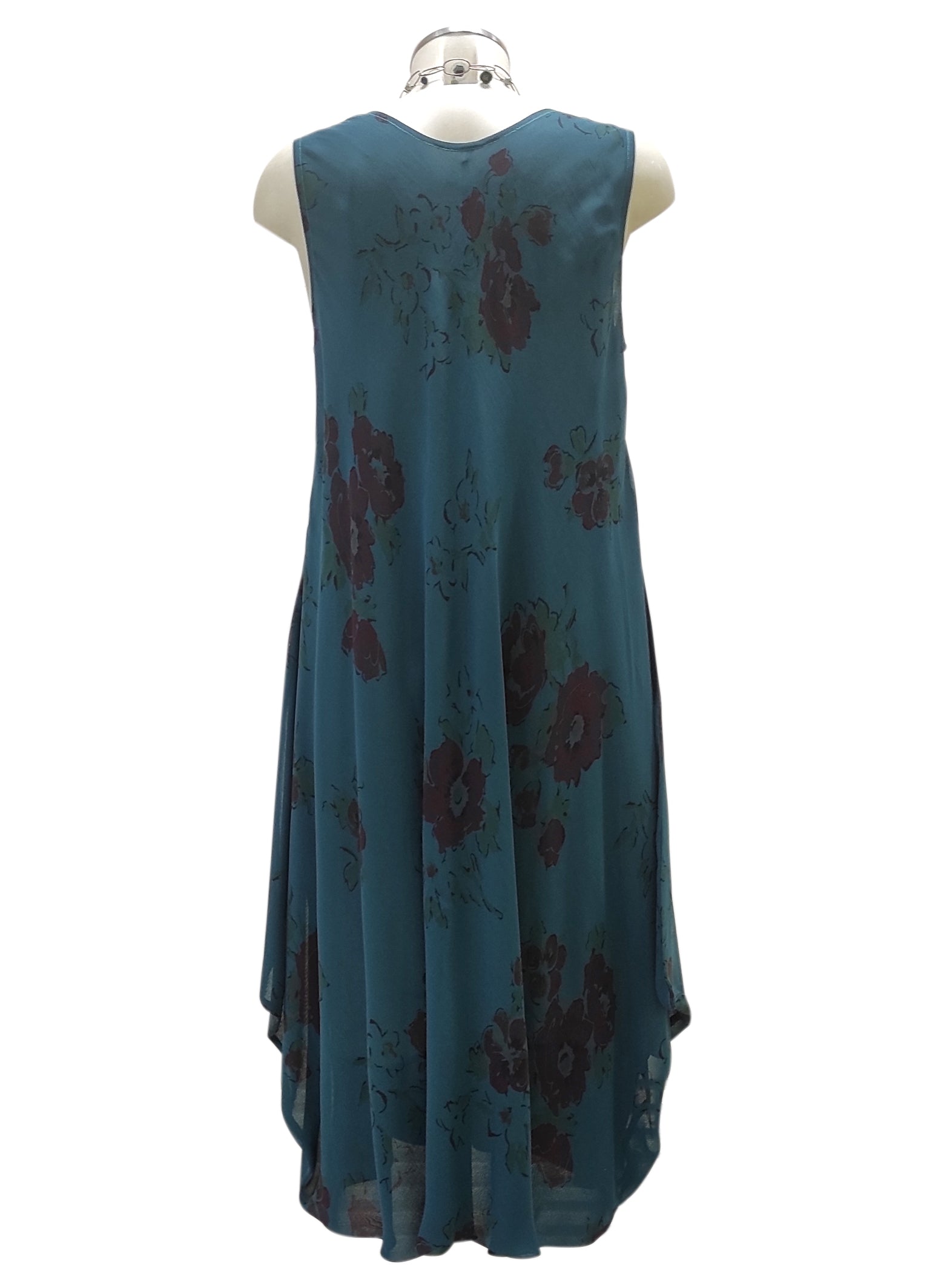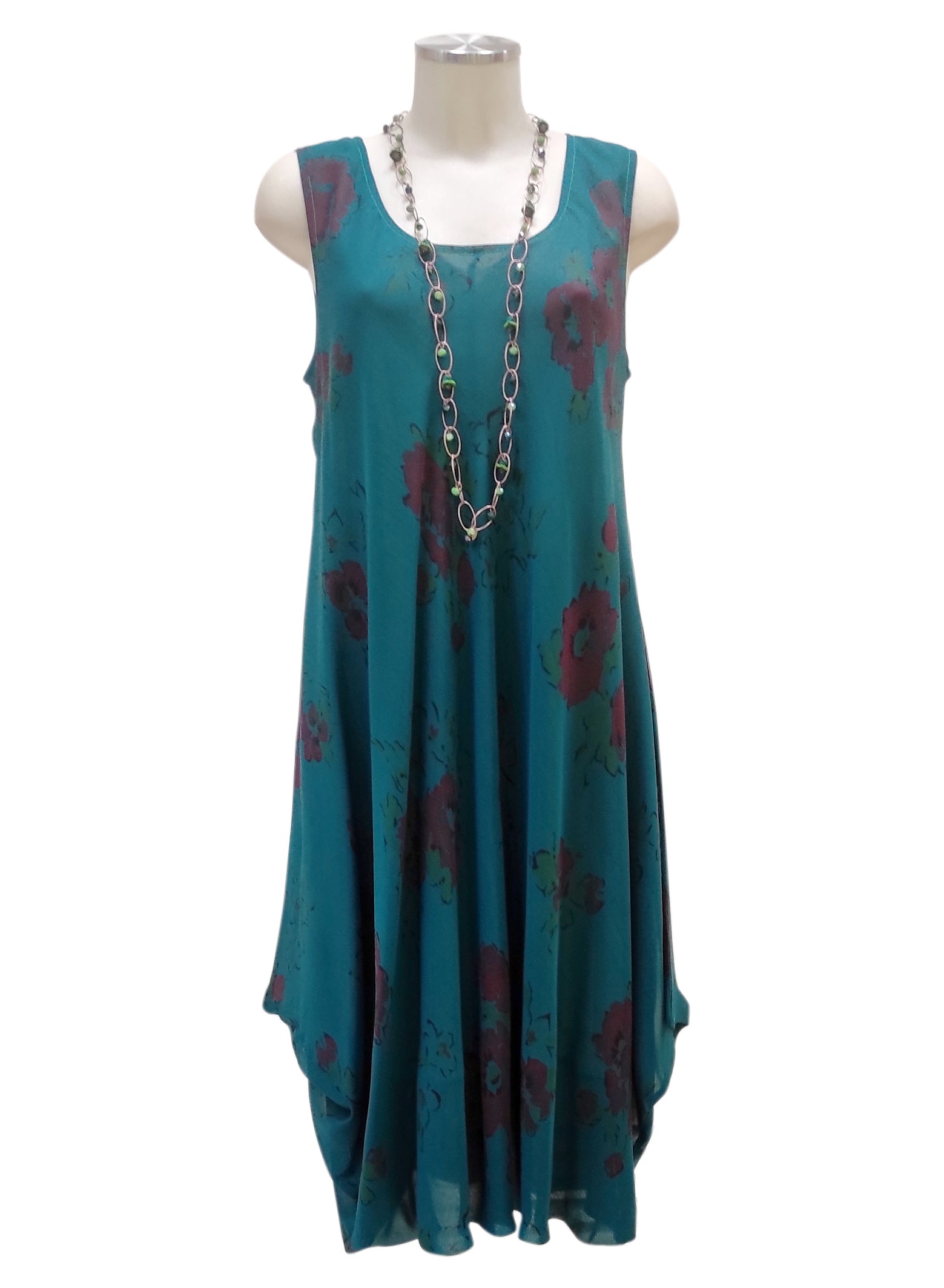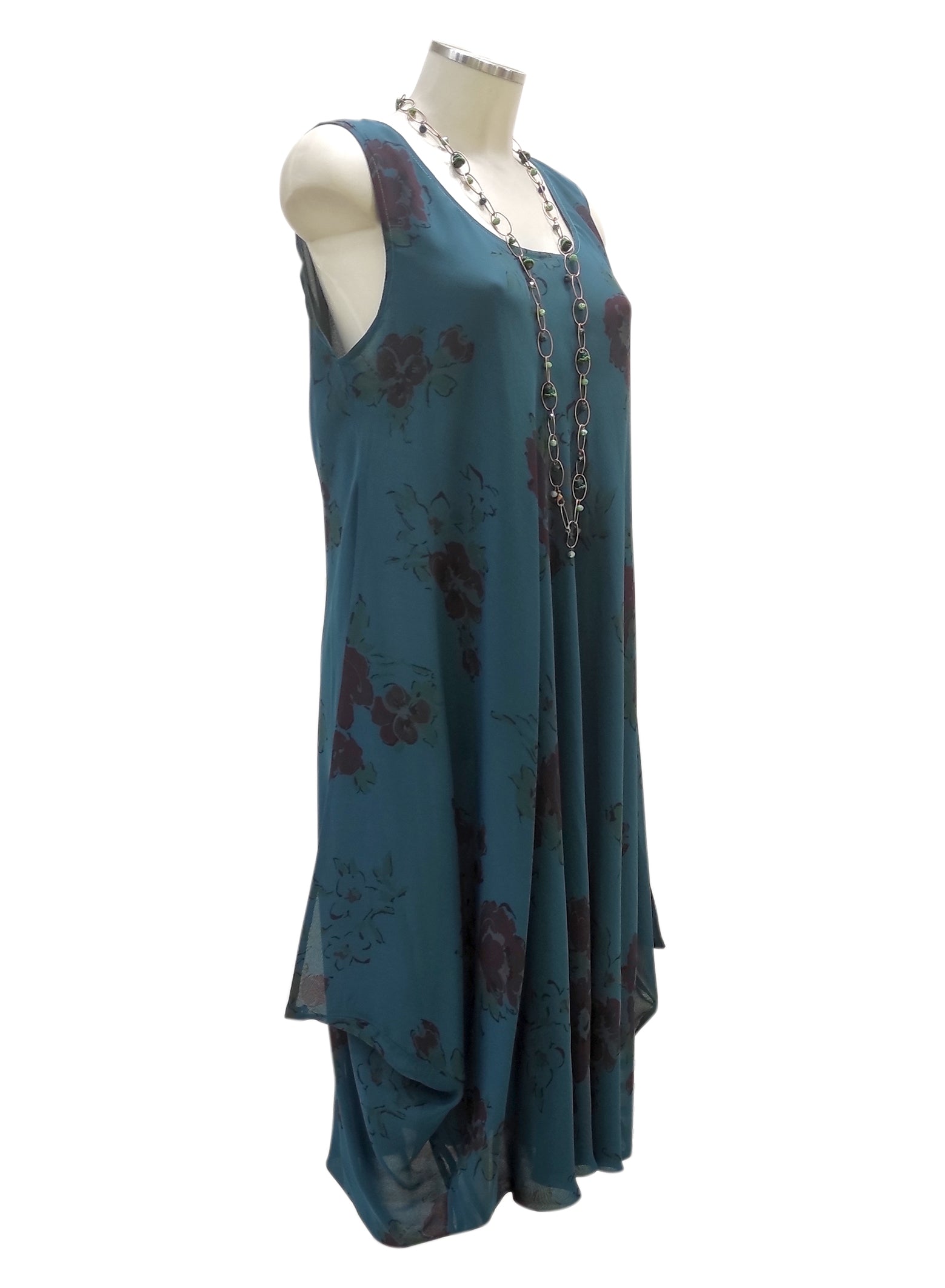 Abito smanicato dal taglio sbieco, realizzato in georgette, 100% viscosa. L'orlo è asimmetrico. Per completare il look, l’abito Luna può essere abbinato insieme allo Spolverino Antonella verde smeraldo.