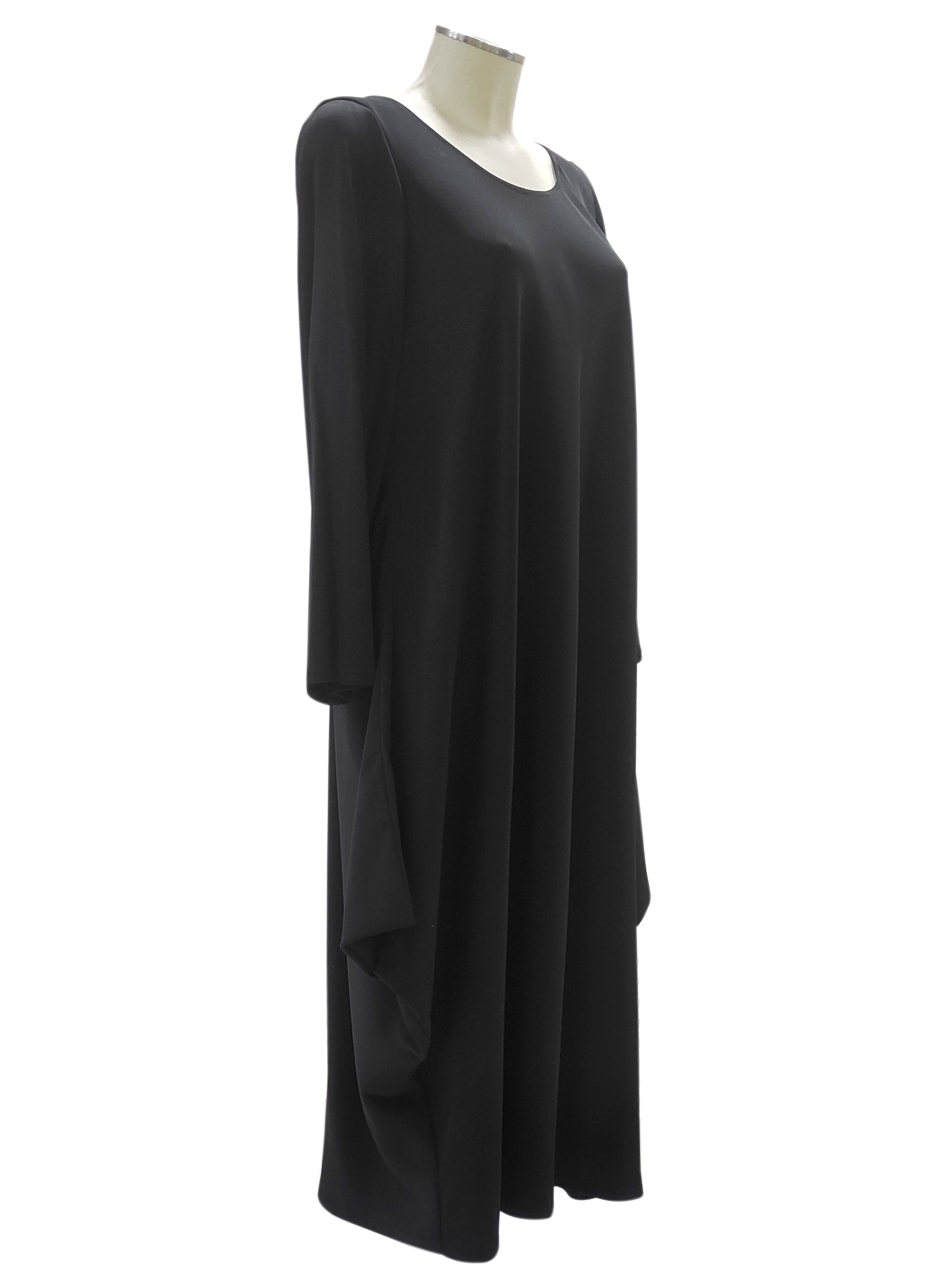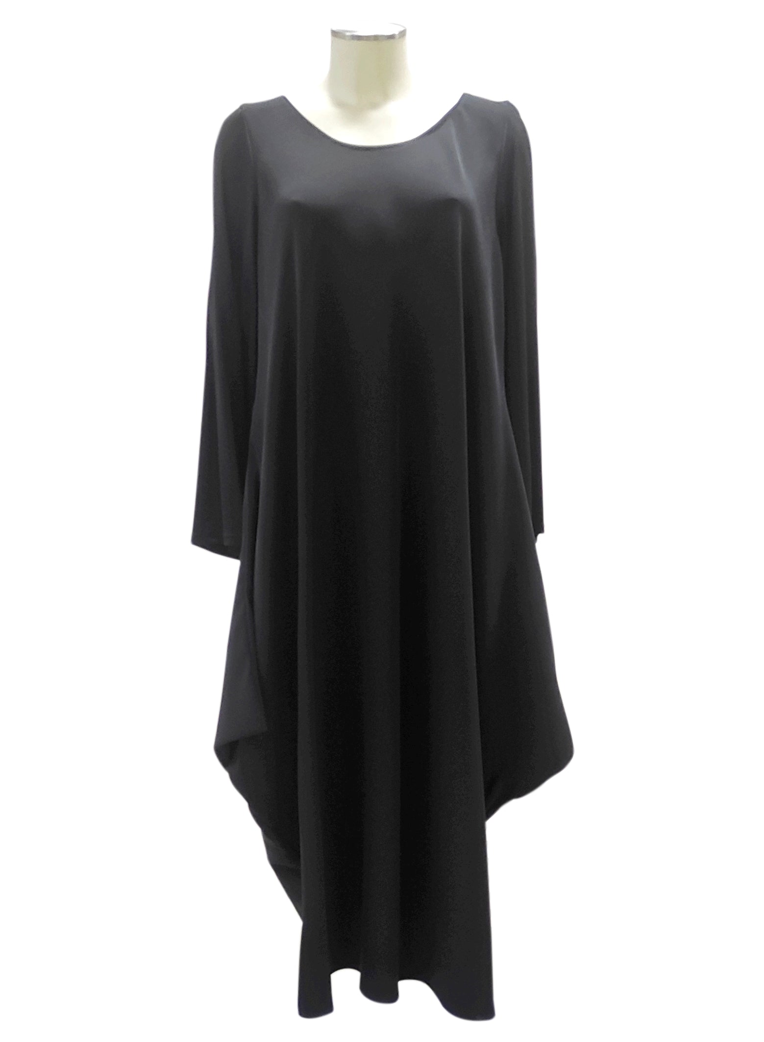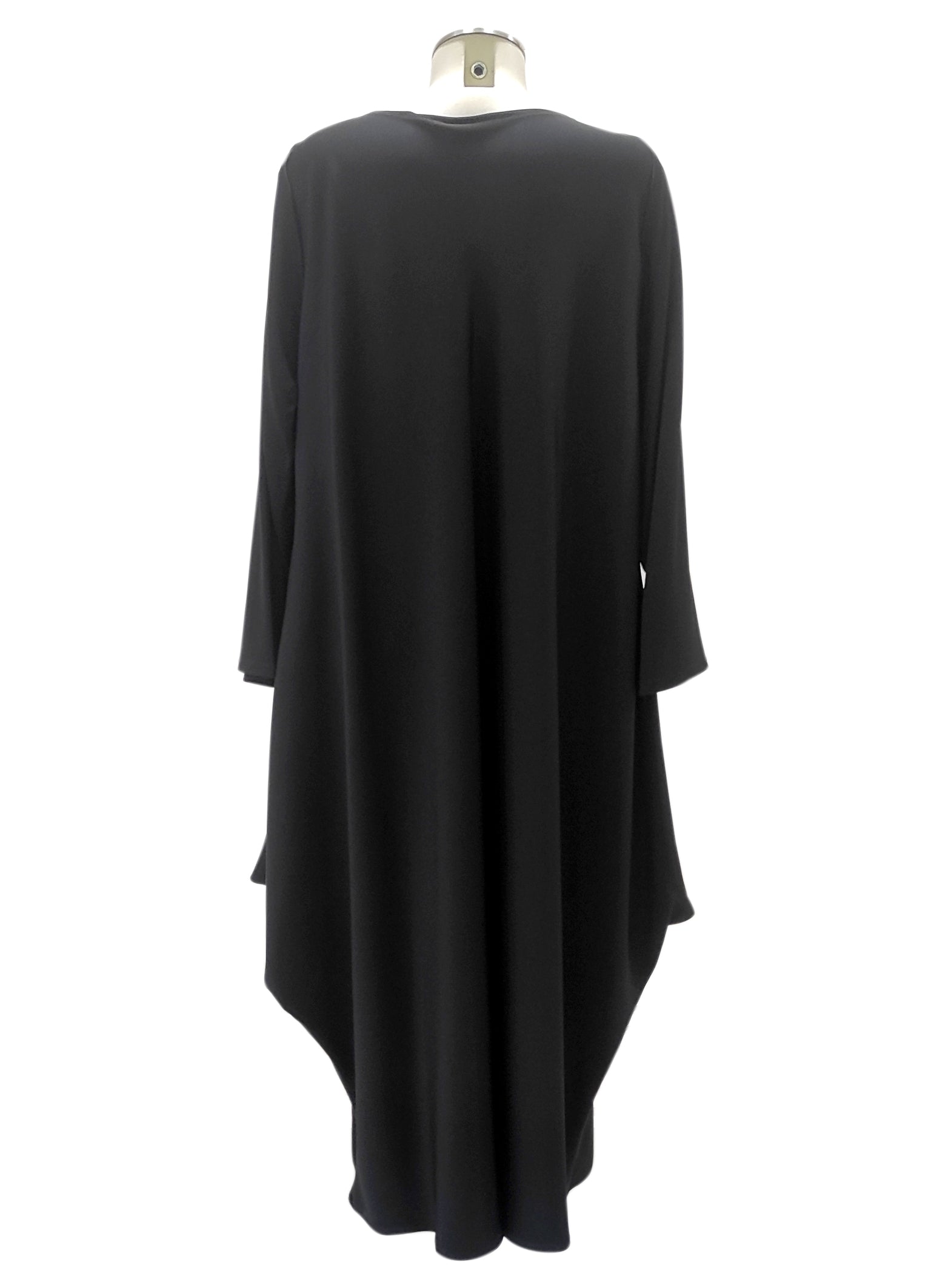 Abito dalla forma asimmetrica realizzato in cady, una stoffa morbida con un ottima vestibilità. Per valorizzarlo al meglio, il nostro consiglio è quello di abbinarlo al suo Soprabito Siham.