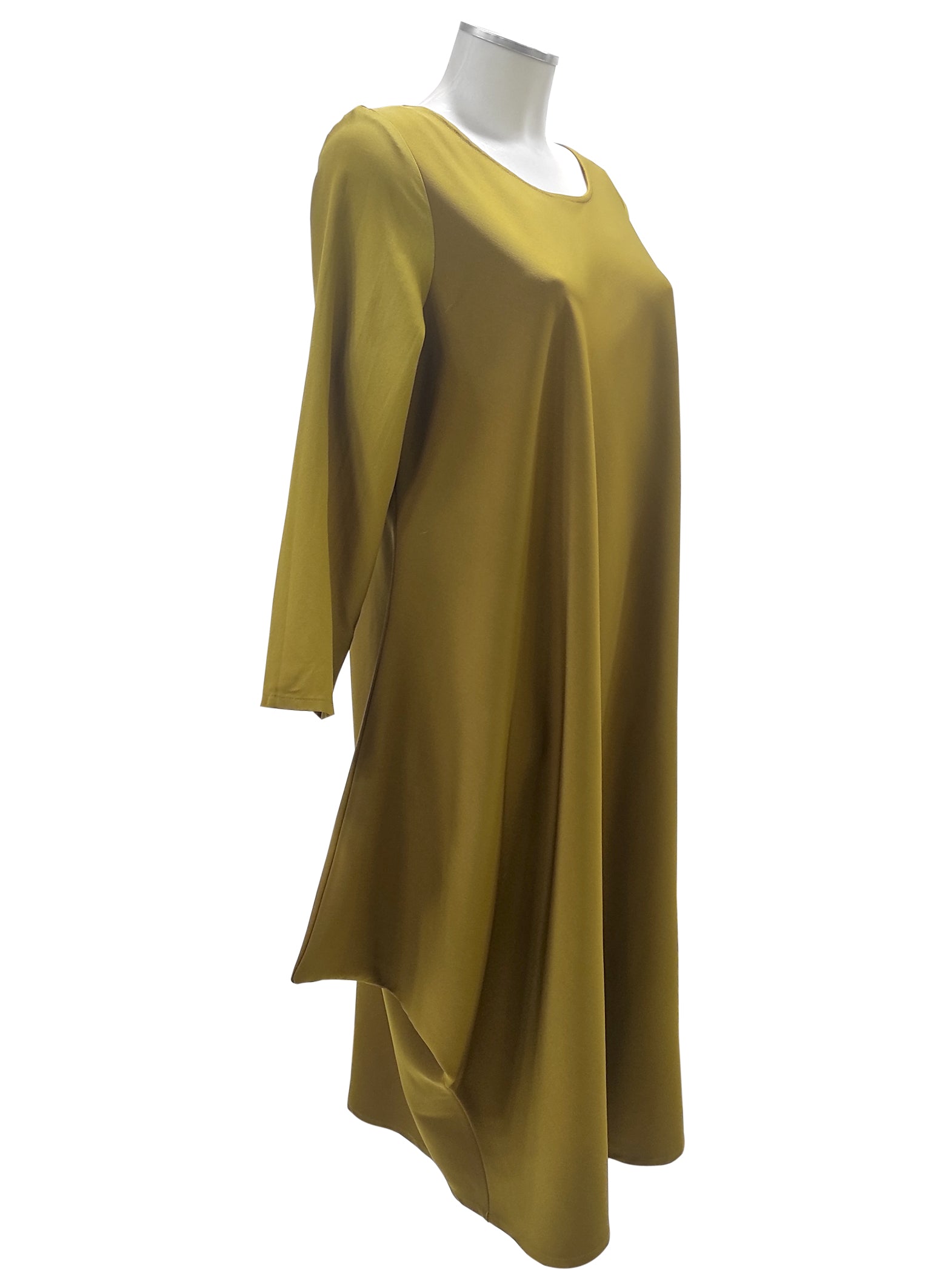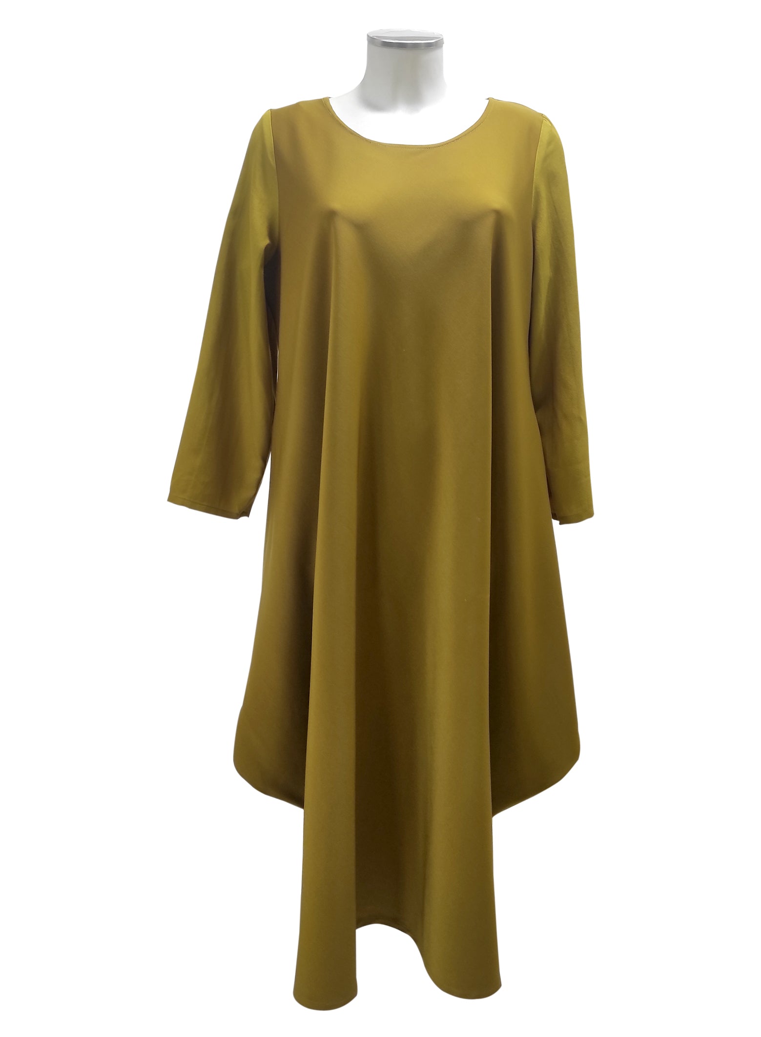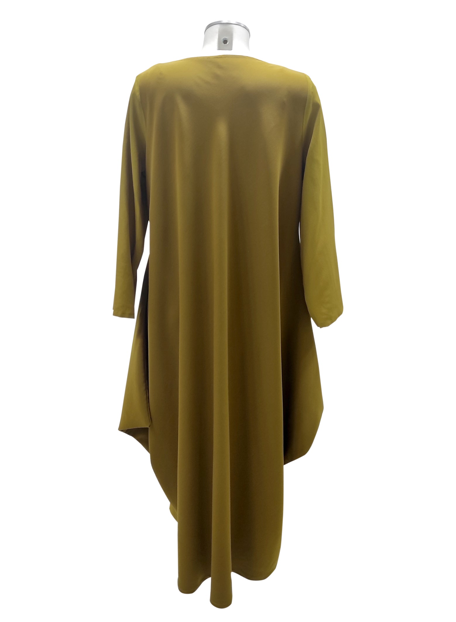 Abito dalla forma asimmetrica realizzato in cady, una stoffa morbida che rende l’abito perfetto per ogni donna. Per valorizzarlo al meglio, il nostro consiglio è quello di abbinarlo al suo Spolverino Balze.