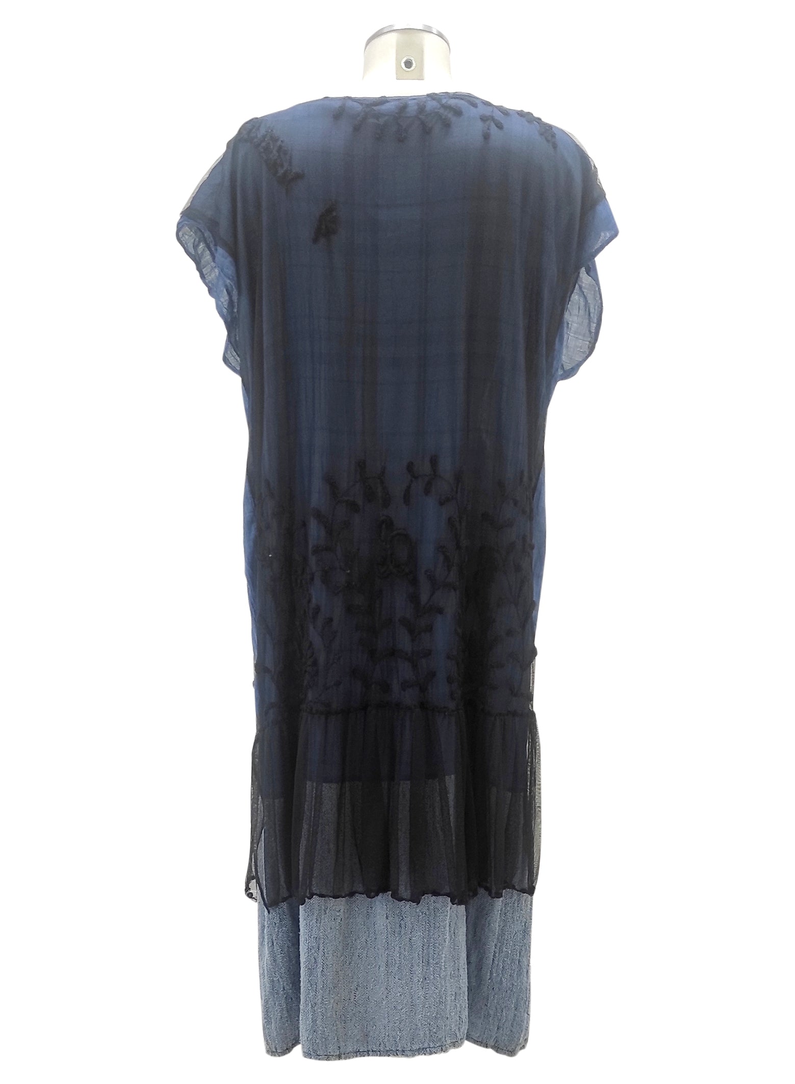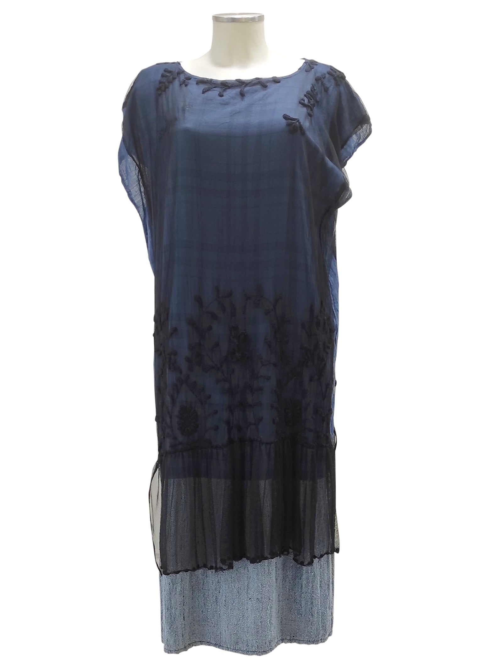 L’abito ha una linea dritta quasi a sacco, con maniche scese e si presenta lungo. Realizzato in tessuto fresco leggero, molto comodo, è un capo jolly senza tempo da avere nel proprio armadio. I particolari colori e decori lo rendono il capo ideale sia per il giorno che per la sera, in estate ma anche nei periodi di mezza stagione. Si possono realizzare molteplici look. Indossalo da solo o sopra una sottoveste, oppure con un pantalone palazzo, con una gonna aderente o anche con un body.