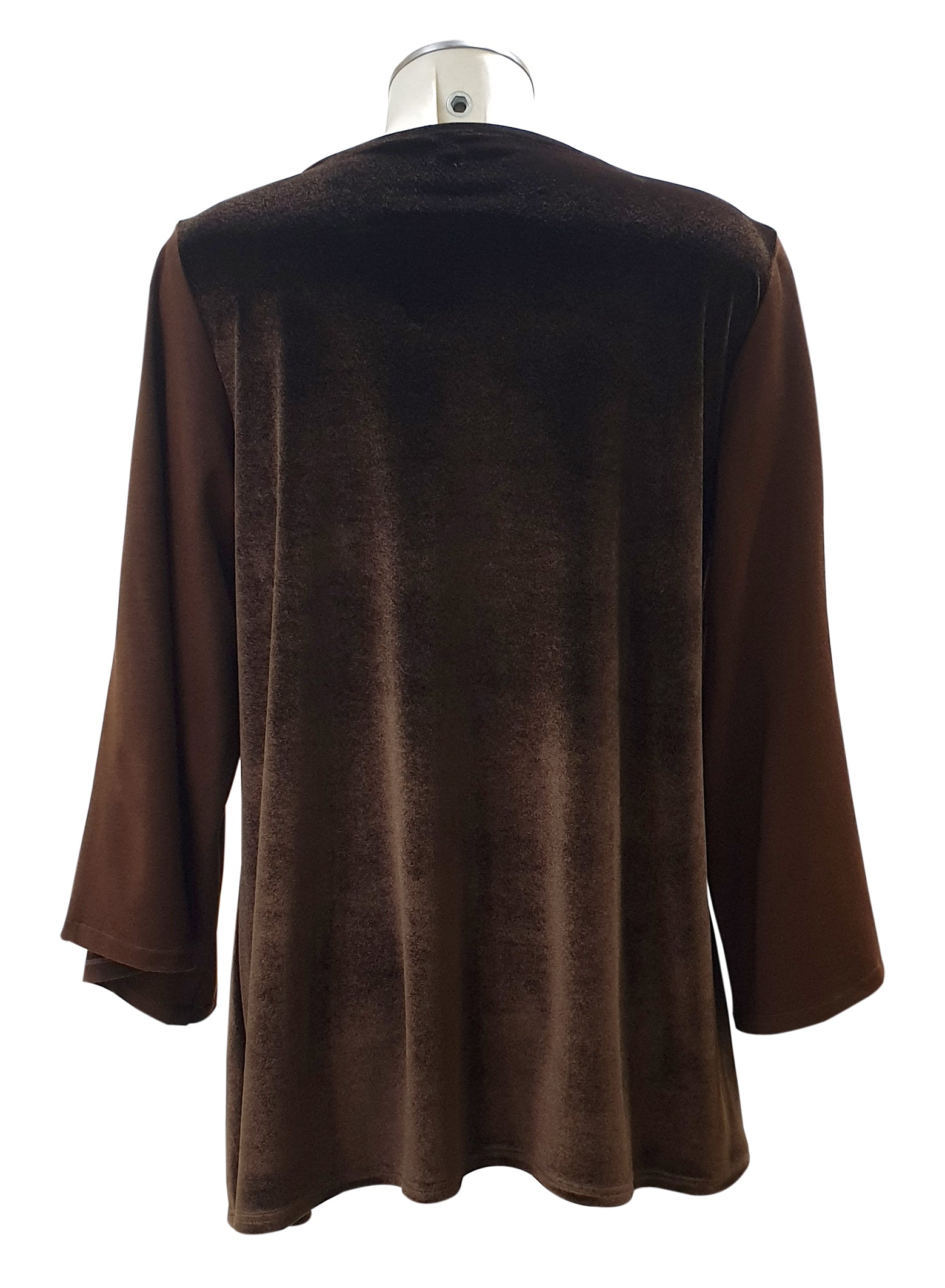Morbida casacca, realizzata in ciniglia. Il collo ha una scollatura a barca, arricchito da un intreccio di stoffa. Le maniche sono ampie e la casacca può essere abbinata insieme al pantalone in ciniglia, o con il nostro pantalone palazzo modello Lorella.