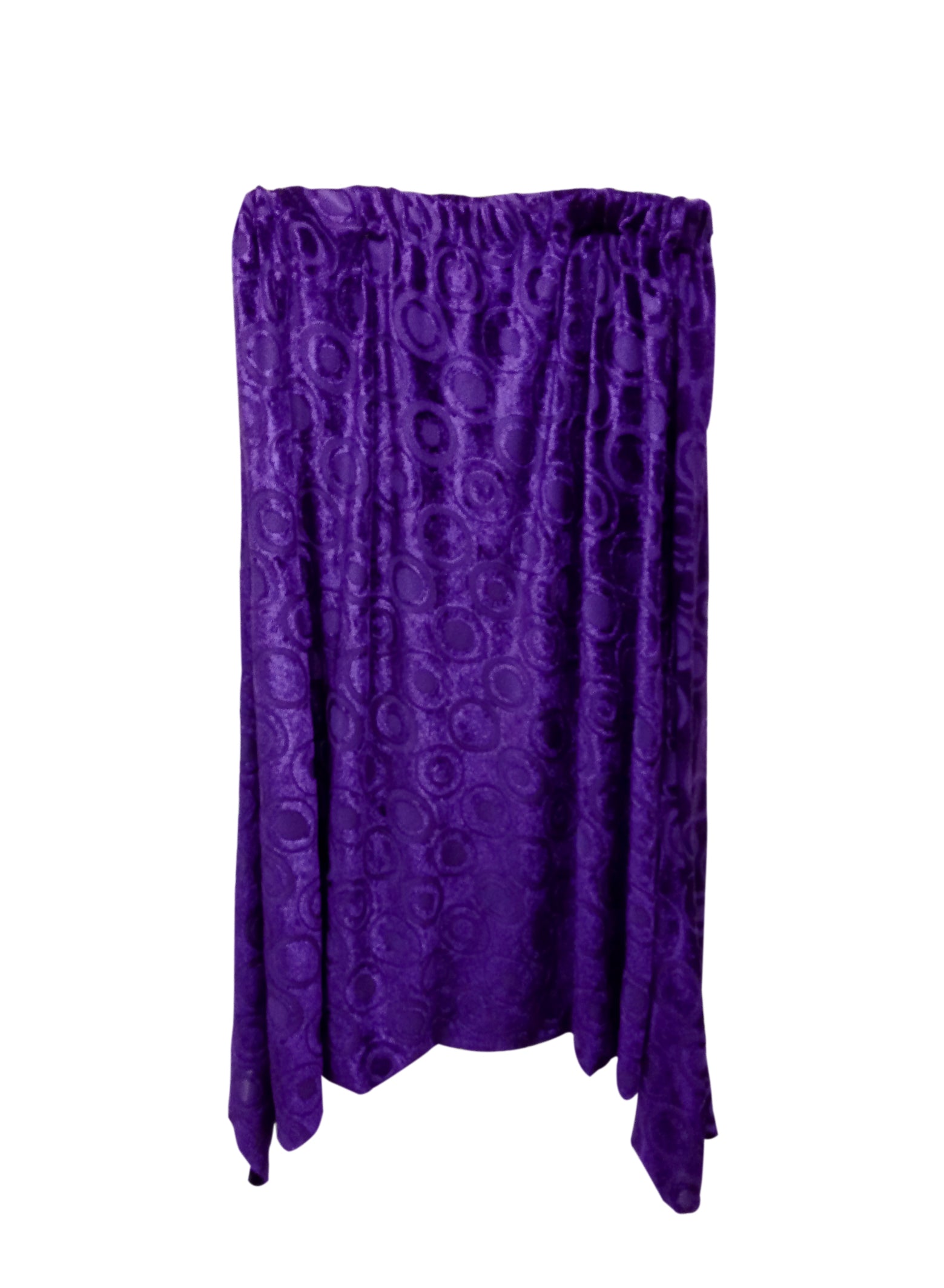 Gonna- pantalone con cavallo basso tipo “alla turca". Consente un’ottima vestibilità grazie all’elastico in vita. Realizzata in velluto devorè.