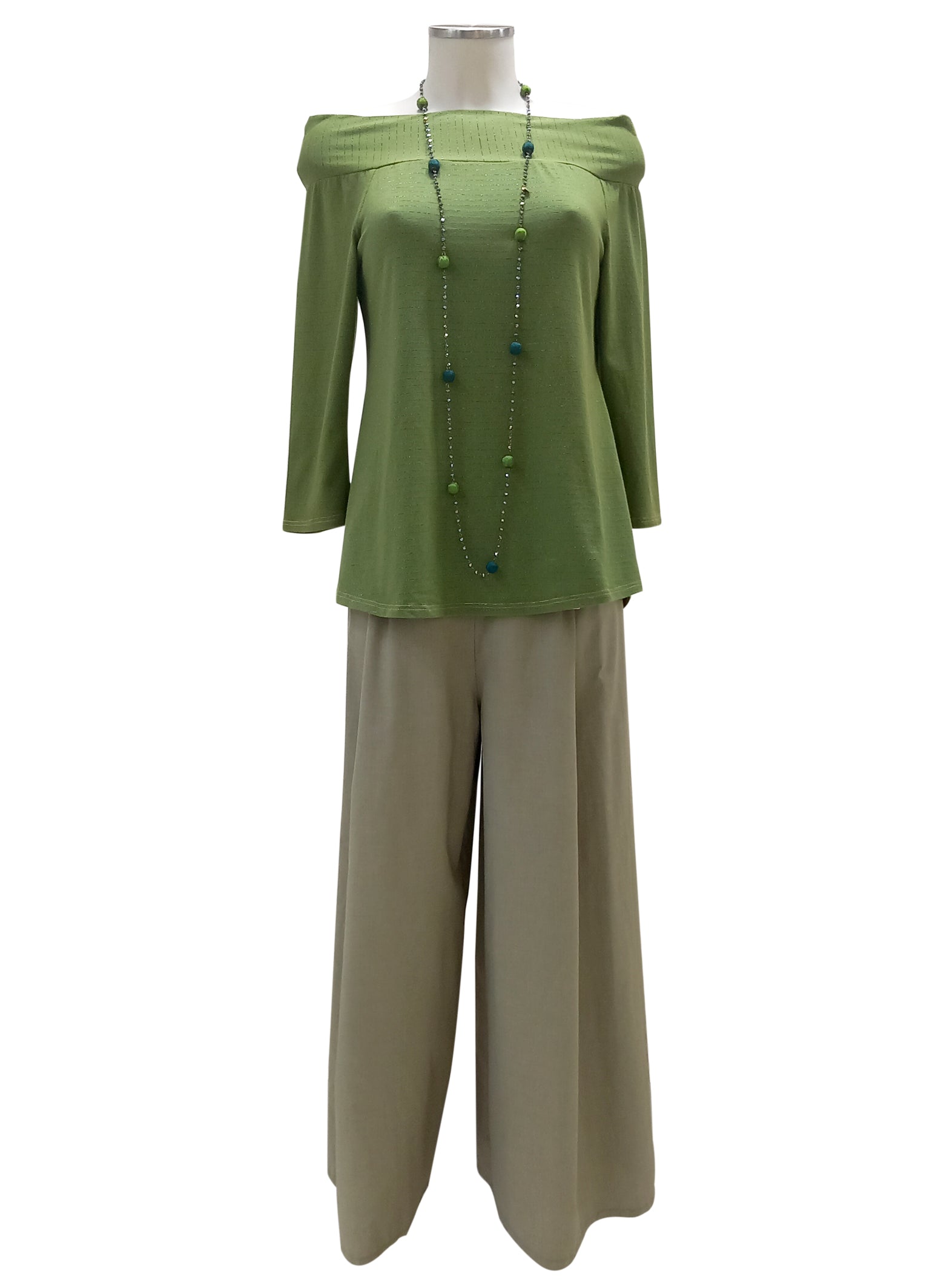 Look: abbinamento della Maglia Ohara Verde Militare, con il Pantalone Bottone Verde MIlitare.