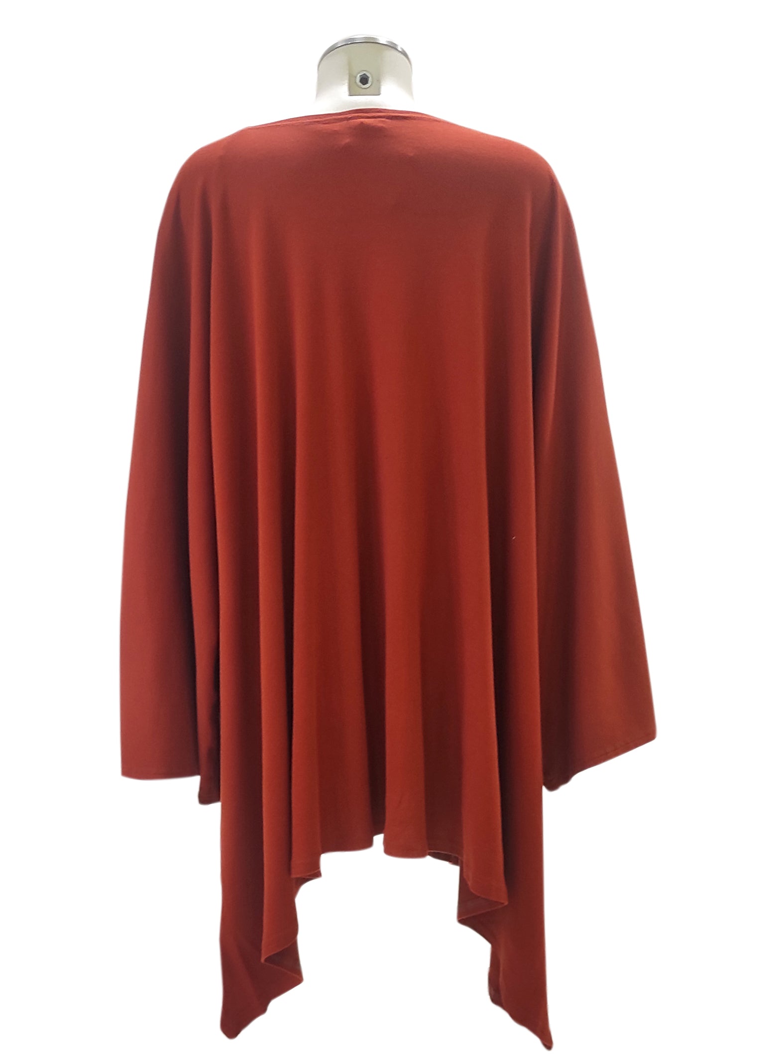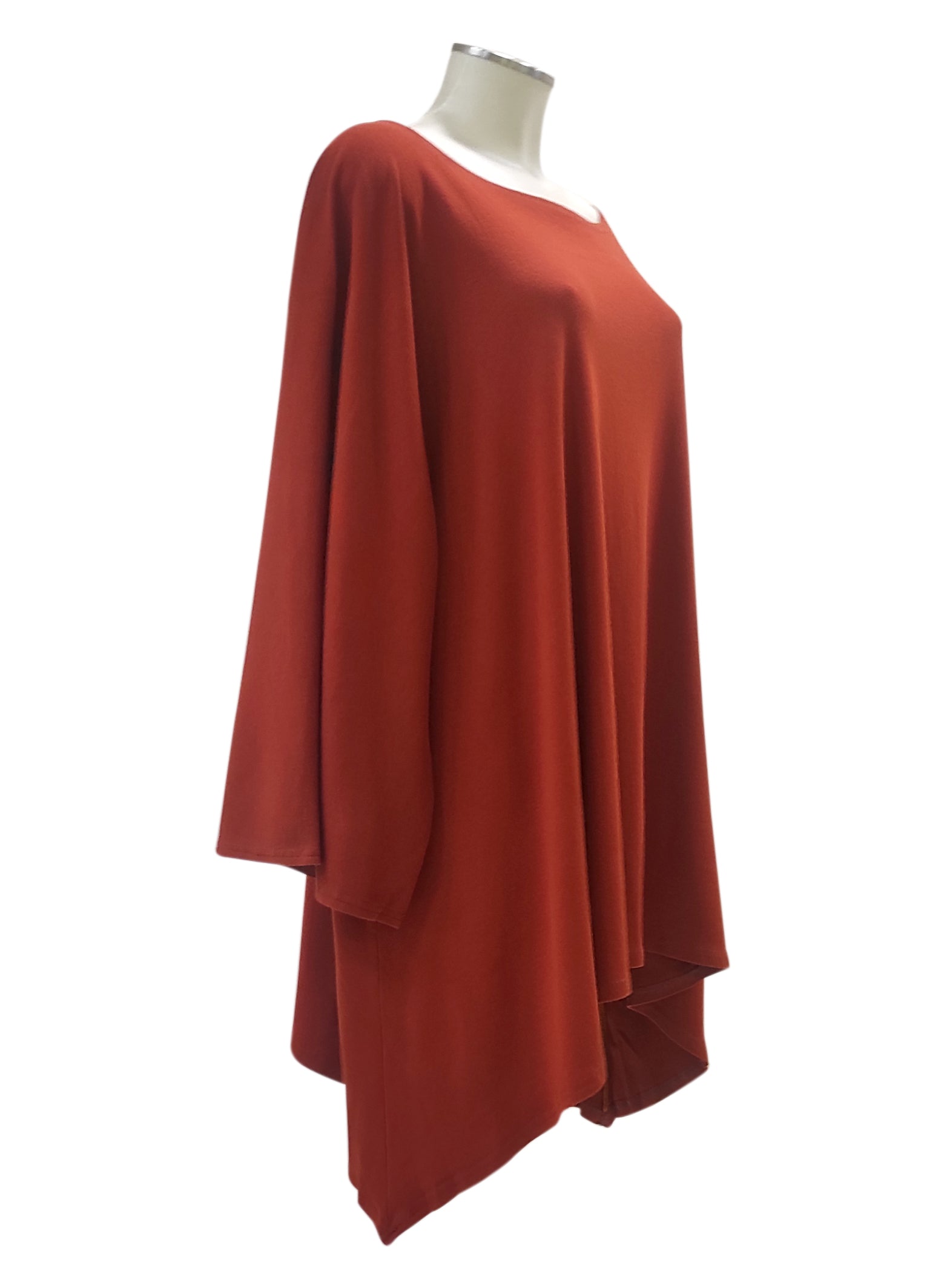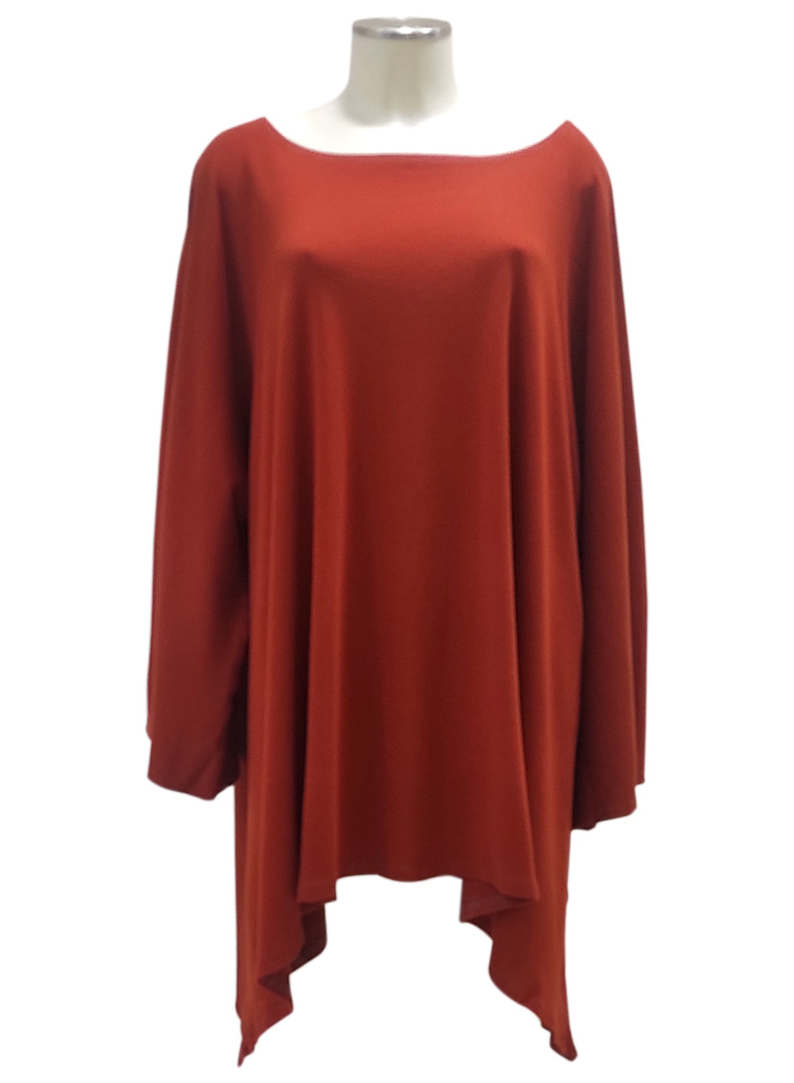 Maglia dallo stile casual, asimmetrica sui fianchi, è realizzata in morbida maglina color ruggine di cotone 100%. Per completare il look, può essere abbinata al Pantalone ALADIN rosso.