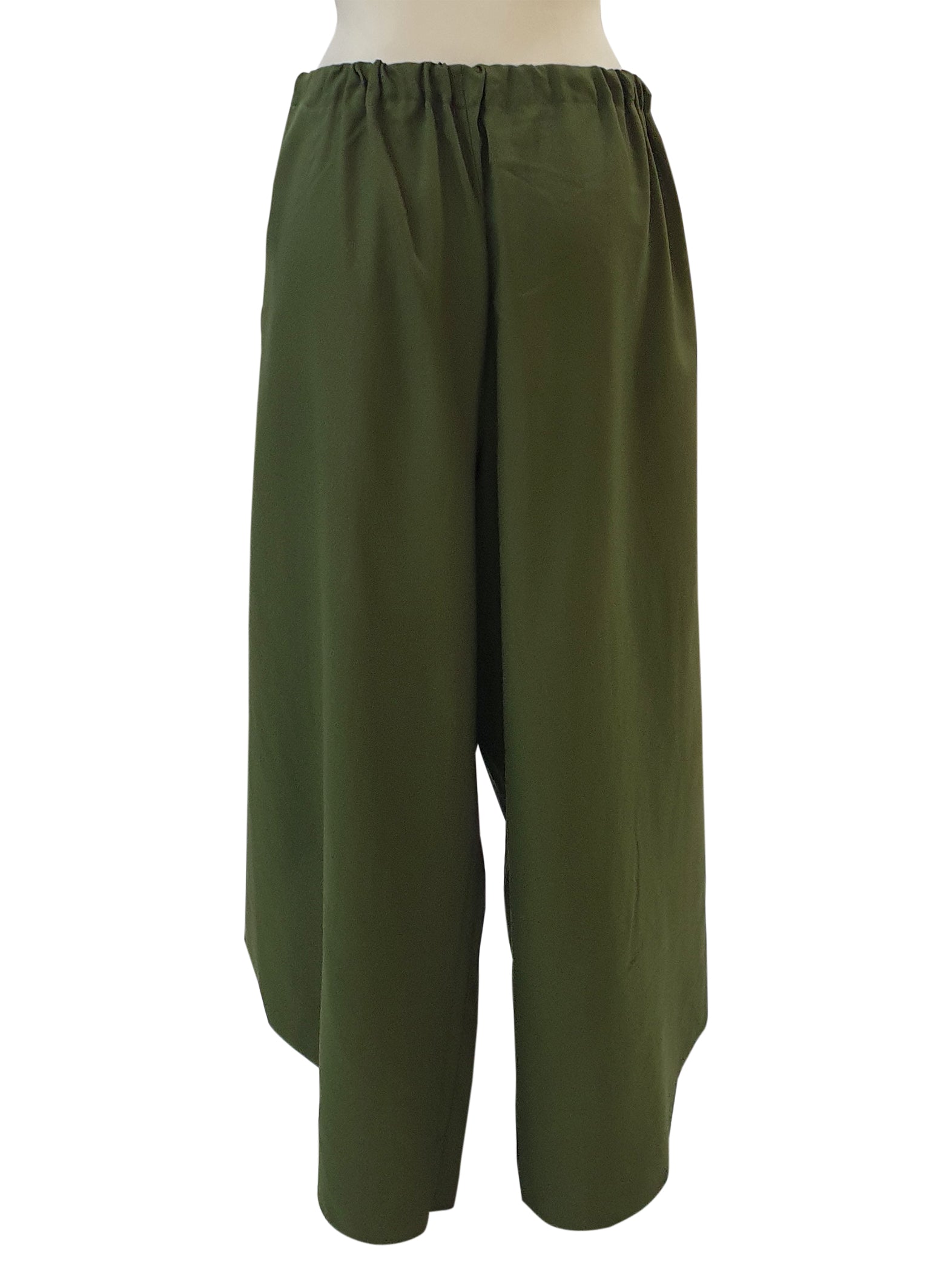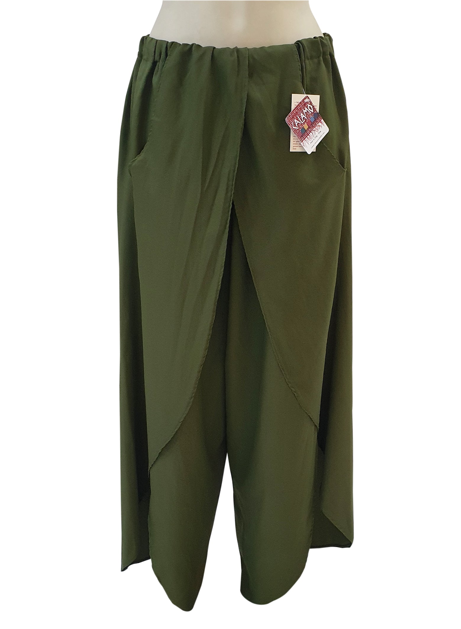 Pantalone morbido e asimmetrico, realizzato in viscosa con elastico in vita e spacchi laterali, disponibile in varie tonalità.