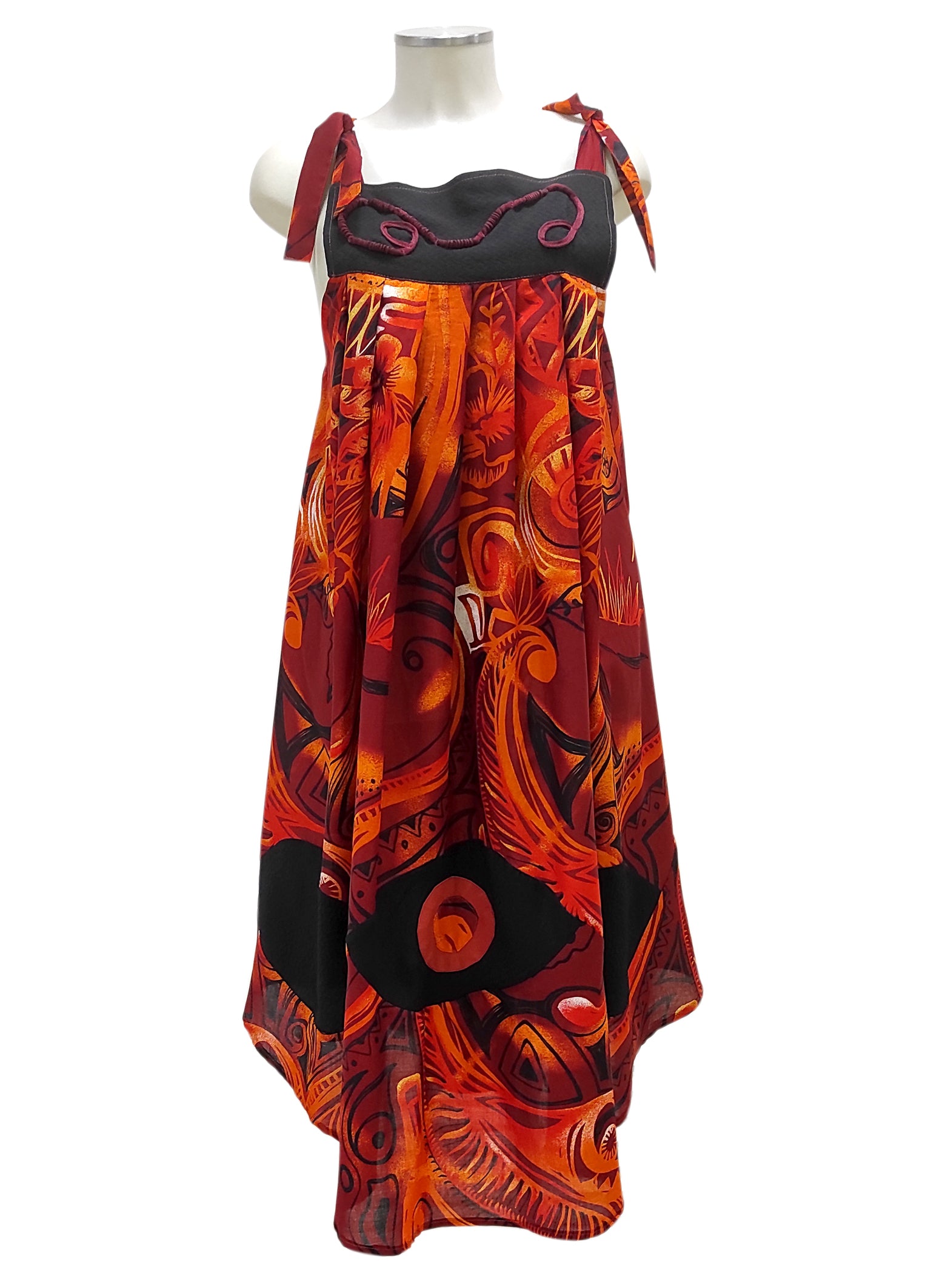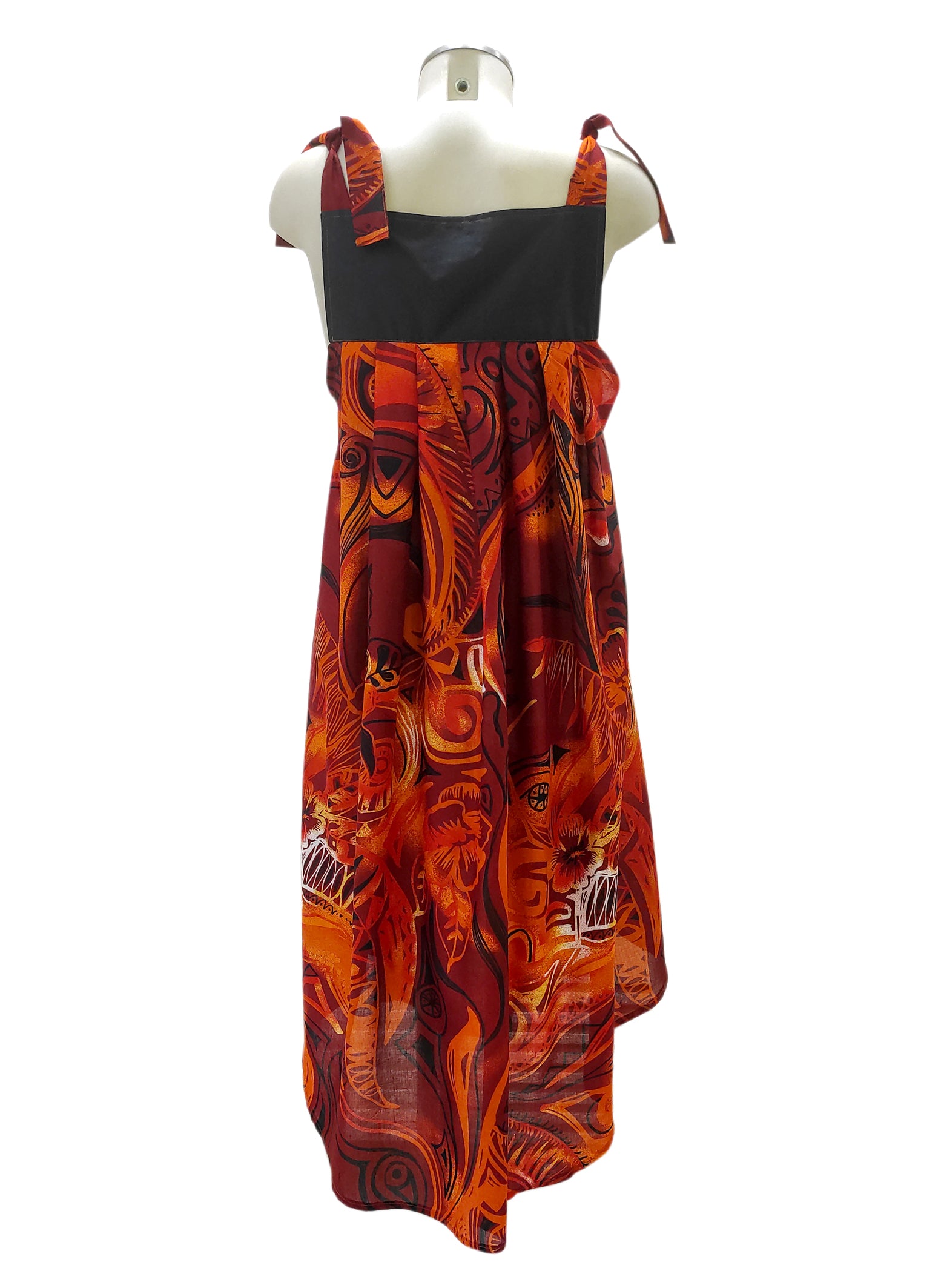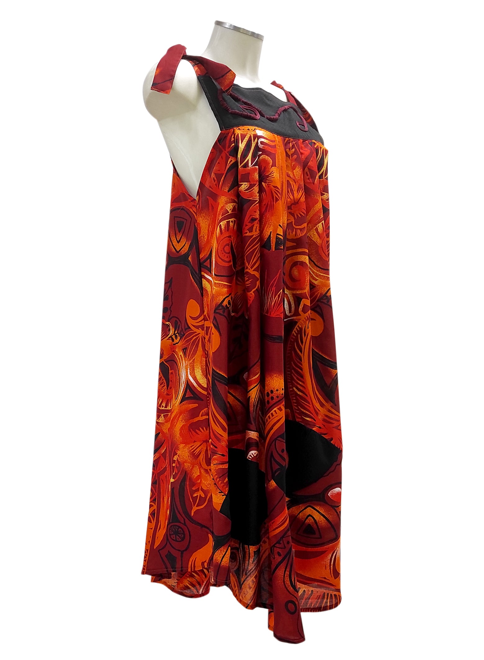 Abito casual, e comodo grazie al taglio in sbieco. Realizzato in fresco cotone popeline in tono fantasia arancio. Il giro manica dell’abito può essere regolato attraverso i comodi laccetti presenti sulla spalla. La scamiciata ha una lunghezza asimmetrica davanti leggermente più lungo. Per completare il look la Scamiciata Laccetto può essere abbinata al nostro coprispalla nero.